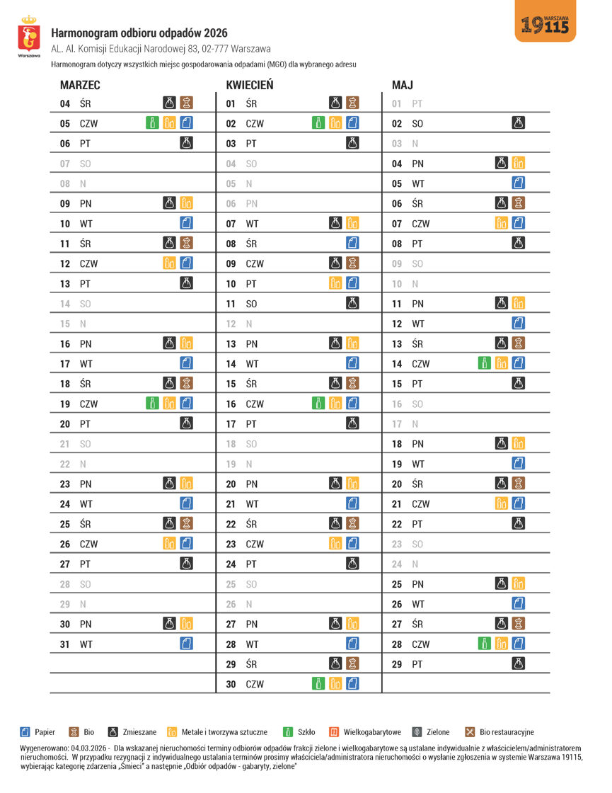 Harmonogram odbioru odpadów